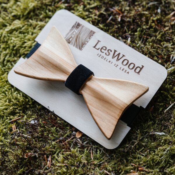 Leseni metuljček “Gentlemen’s Edge”, mere 6 x 12 cm, je izjemen dodatek, izdelan iz češnjevega ali brestovega lesa, z gladko obdelavo in značilnim zrnatim vzorcem, ki poudarja naravno lepoto lesa. Sredinski trak je na voljo v različnih barvah po želji, kar omogoča personalizacijo in dodaja individualni pridih vsakemu metuljčku. Ta eleganten modni dodatek združuje klasično obliko z modernim občutkom, narejen s spoštovanjem do narave in trajnosti.