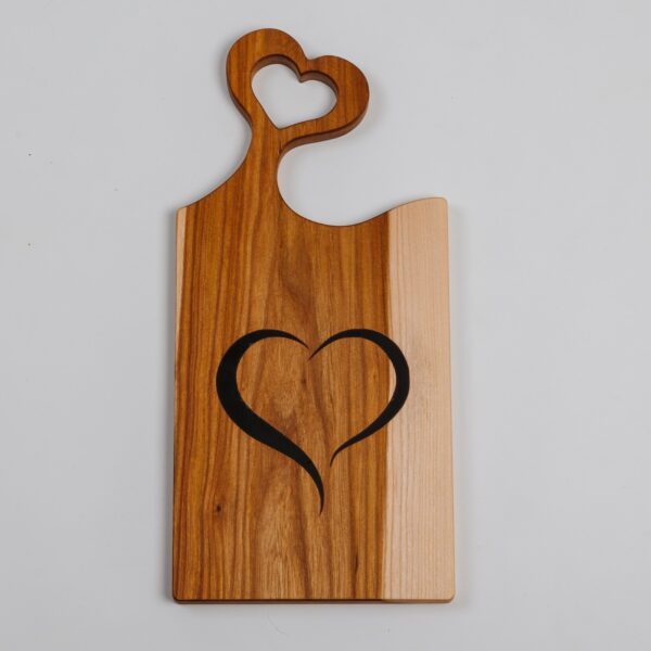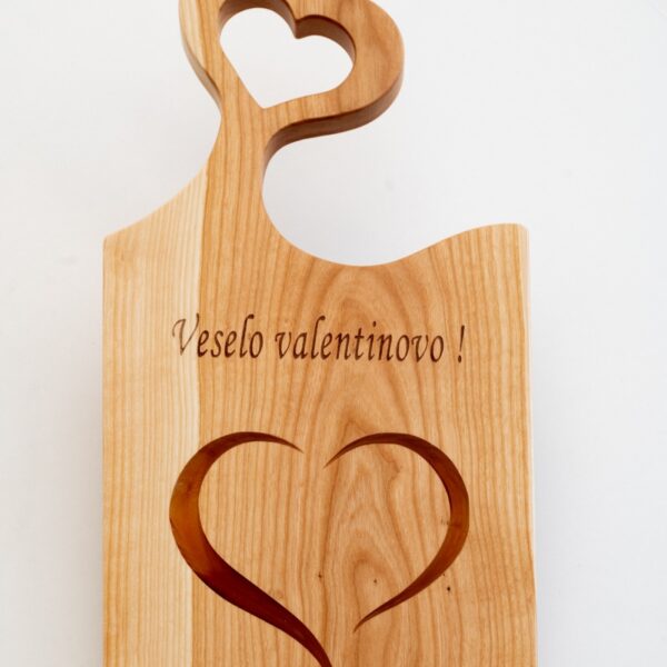 Postrezite svojo kulinarično mojstrovino z umetniško noto in leseno desko za rezanje z motivom srca. S prefinjenim dizajnom velikosti 18×39 cm prinaša ta deska v vašo kuhinjo ne samo funkcionalnost, temveč tudi estetski užitek. Lesena deska z največjo natančnostjo in iz najkakovostnejšega lesa, ter motivom vam omogoča, da rezanje in pripravo hrane spremenite v pravo umetnost.